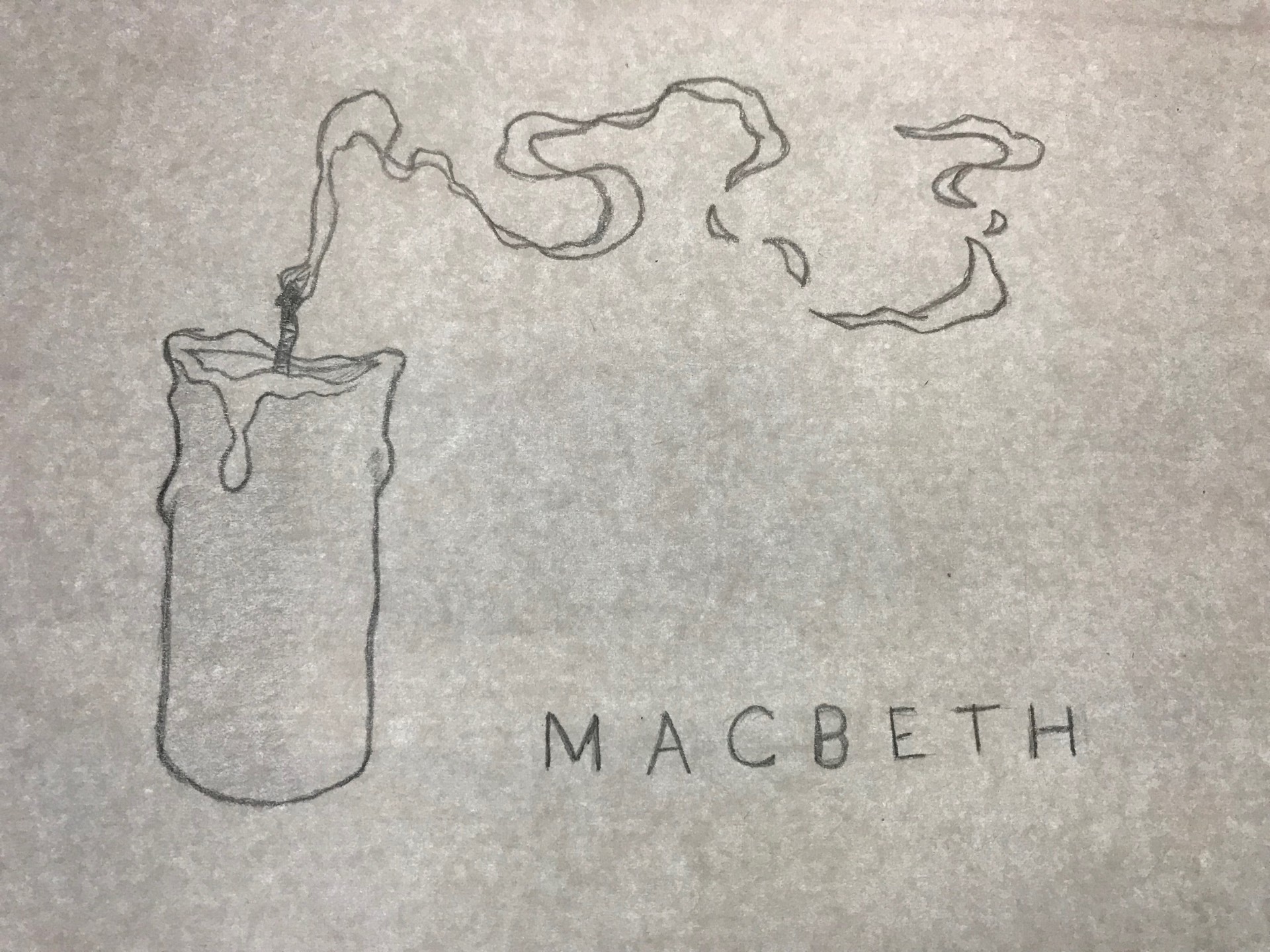 Higher up is our playbill encompass, and I drew a candle since later in the story Lady Macbeth would bear around a candle before she started slumber talking, which was a meaning part of the story. And since Macbeth and Lady Macbeth'southward reign came to an end, I drew the candle equally if y'all simply blew it out, which signifies Macbeth and Lady Macbeth's fate.
